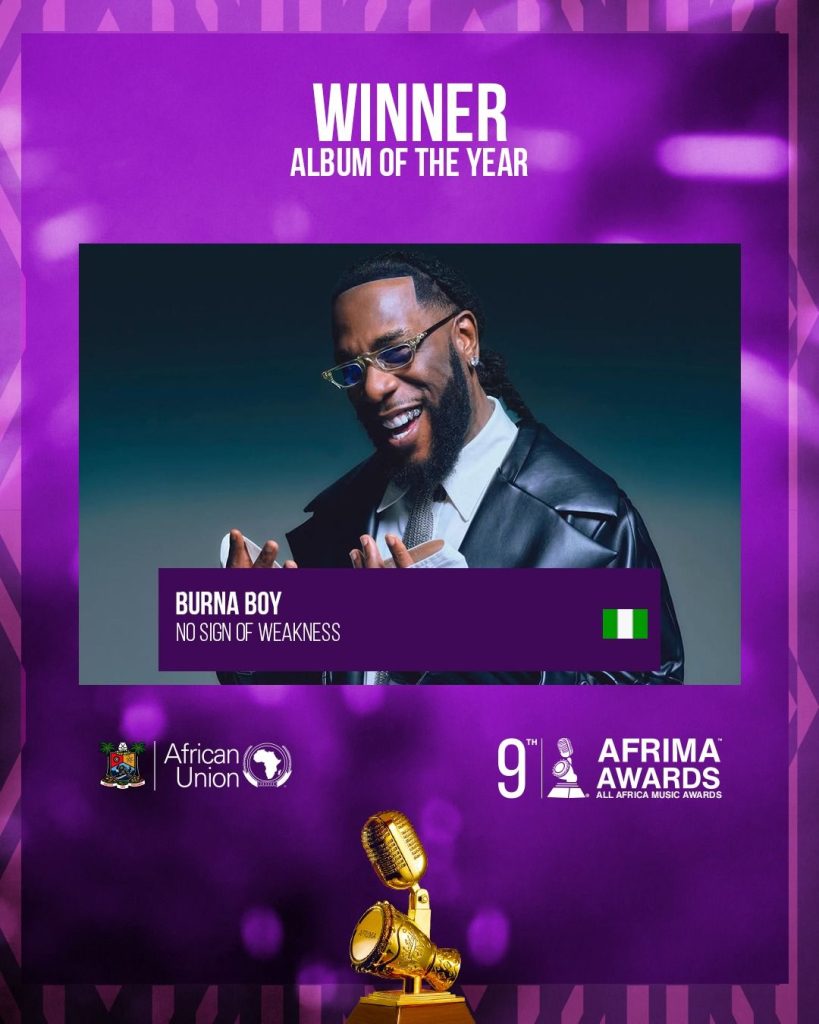 De son côté, le géant Burna Boy confirme sa régularité au sommet du classement continental. Son projet No Sign of Weakness remporte le titre d’Album de l’année. Par ailleurs, Shallipopi a raflé la catégorie Chanson de l’année avec son hit « Laho ».