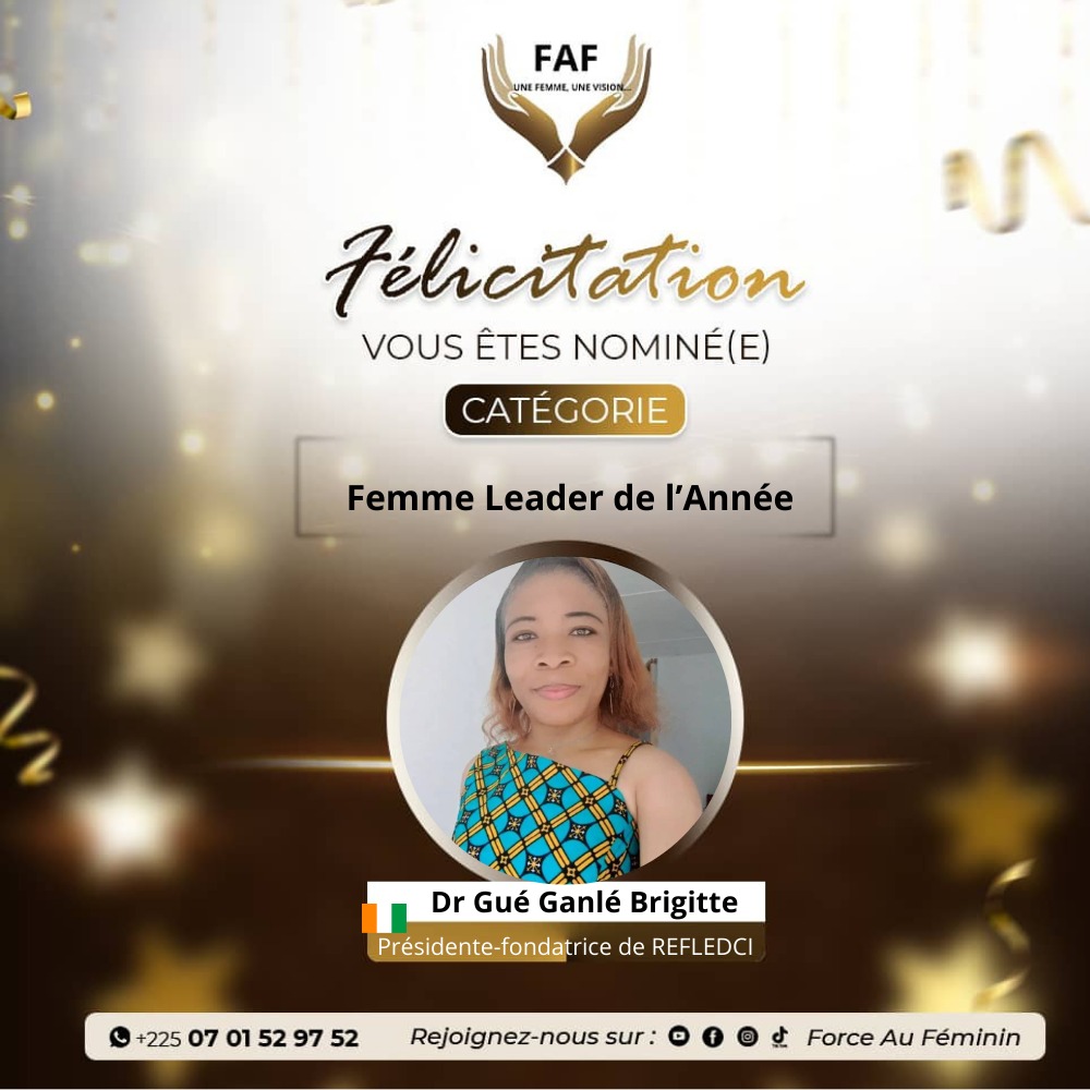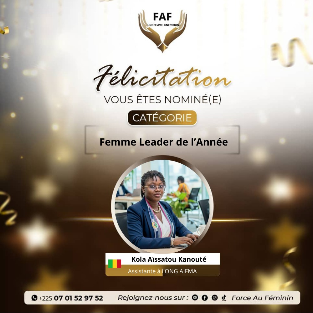 Pour cette édition 2026, la compétition dans la catégorie « Femme Leader de l’Année » se joue entre deux personnalités aux parcours inspirants : Dr Gué Ganlé Brigitte,et Kola Aïssatou KANOUTE.