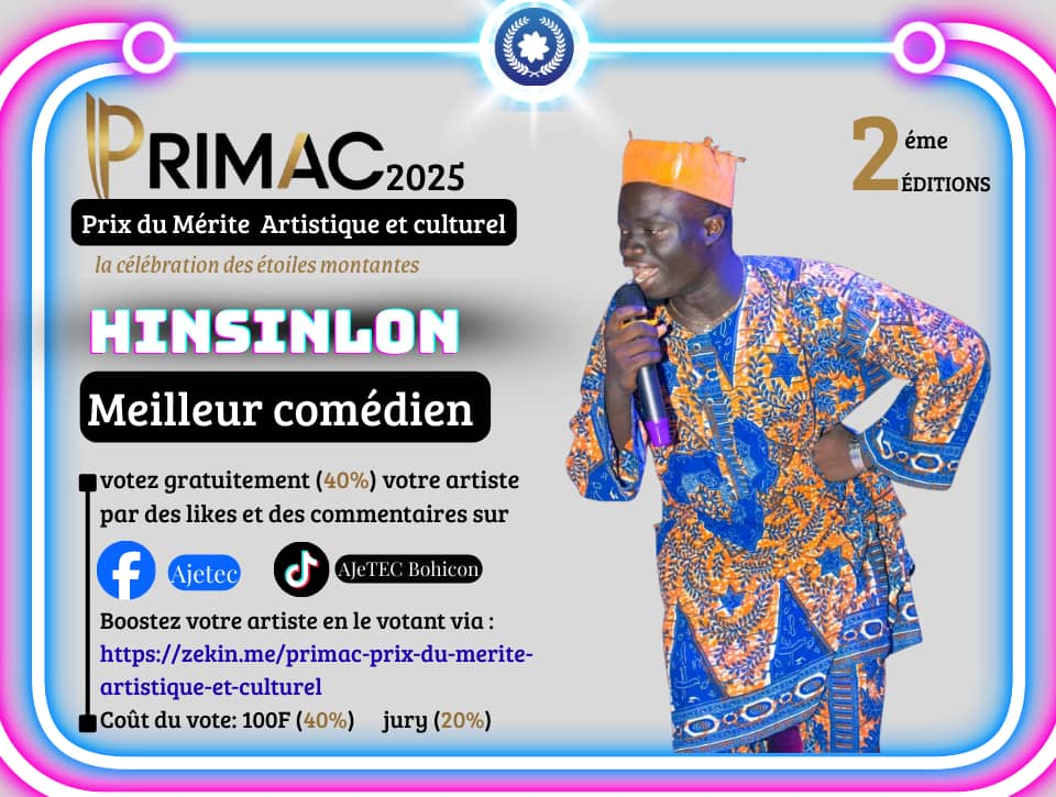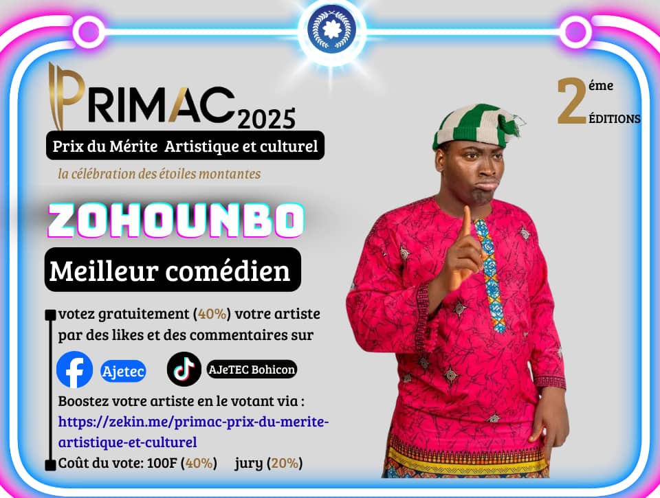 Le Prix du Mérite Artistique et Culturel (PRIMAC) célèbre le talent béninois en mettant en lumière la catégorie très attendue du Meilleur Comédien.